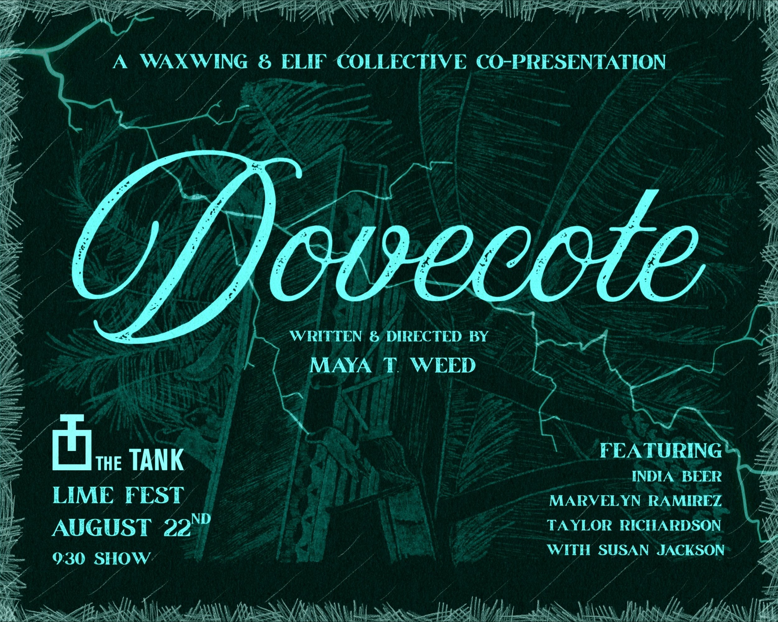 A new play presentation written & directed by Maya T. Weed Co-Produced by WAXWING Productions & The Elif Collective In association with The Tank’s Lime Fest