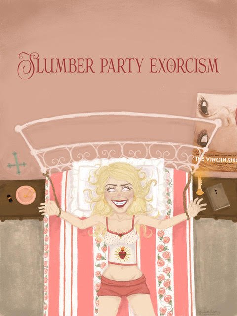 BLOOD, GLITTER, AND HOLY WATER! When a group of girls obsessed with the occult perform a ritual at a sleepover, things go awry, and their best friend becomes demonically possessed. Now, her besties must team up with a hot but useless priest and a paranormal girl blogger to fight the demon inside her. Slumber Party Exorcism is a gory, sparkly ode to girlhood, friendship, and homoerotic friendships.